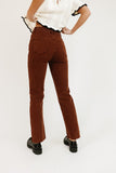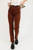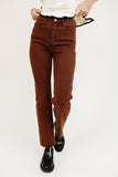 your new go-to bottoms, these dark brown jeans have that ideal high-waisted, straight-leg slim fit. both comfy + versatile, you can pair these high waisted brown pants with sweaters + boots in the fall // winter, + tanks + sneakers in the spring // summer.