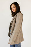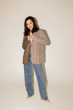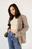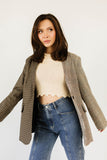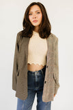 make your it-girl outfit dreams come true with this chic double patterned plaid blazer. comprised of two vintage-inspired brown plaid fabrics, this slouchy blazer was made for compliments. we love it layered over a casual outfit, or as the statement piece in a fall ensemble.