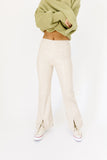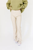 - oat // slight flare, back zipper closure, seam detailing, front slits