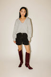 the epitome of cute + cozy, this slouchy scoop neck sweater is everything you’ve ever wanted + more. luxuriously soft + thick, it has an oversized silhouette with long balloon sleeves. whether you layer it over tees + dresses or style it on its own, this exclusive grey sweater was made to be worn over, + over, (+ over) again.