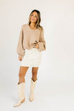 the epitome of cute + cozy, this slouchy scoop neck sweater is everything you’ve ever wanted + more. luxuriously soft + thick, it has an oversized silhouette with long balloon sleeves. whether you layer it over tees + dresses or style it on its own, this exclusive taupe sweater was made to be worn over, + over, (+ over) again.