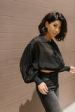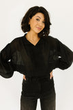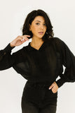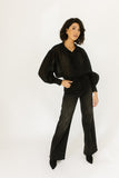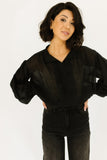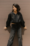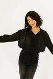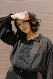 • black // collared, working buttons, elastic hem, cuffed sleeves