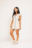 prepare yourself for endless compliments with this dainty blue bow patterned mini dress. featuring a classic wrap silhouette with an adjustable tie at the waist, it’s the perfect combination of flirty + functional. dress it up with heels for brunch dates, or down with sneakers for casual hangs.