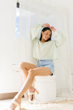 • paired with our carry on denim shorts + paily raffia heels in vanilla