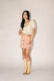 the perfect combination of flirty + feminine, this pink floral mini skirt will take you from day to night, season after season. with its classic a-line shape + soft floral pattern, it’s a foolproof piece that works with literally anything. dress it up with a blouse + heels, or down with a tee + boots.
