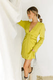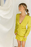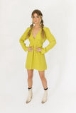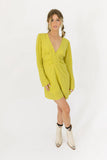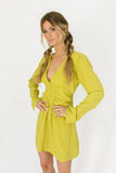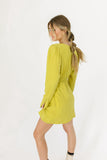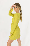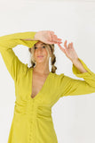 - lime // mini length, v-neckline, zipper closure, smocking in back, faux buttons, fully lined