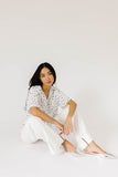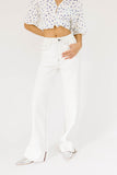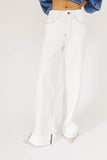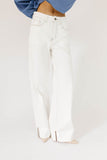 the white wide leg jeans of our dreams. these relaxed white bottoms have a mom-jean-esque fit + feature brown seam detailing. full of endless casual outfit opportunities, these slouchy white denim jeans are an all-season essential.