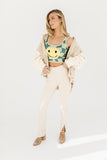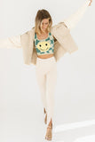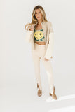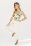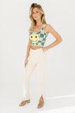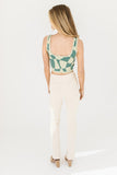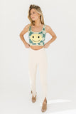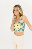 - sage + emerald checkers // large smiley face print, square neckline, cropped, thick tank sleeves
