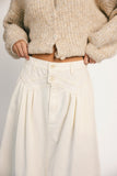 - off white // midi length, double button closure, front zipper, belt loops, pockets, pleated, seam detailing