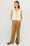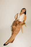 - mushroom // high waisted, wide leg, one button fly zip, belt loops, front pockets, pleat detailing