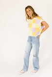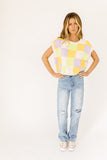 - paired with our go for it sweater + nora button knit top + suki platform clogs // free people + bailey checkered vest