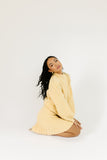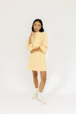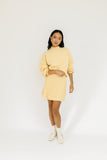 - yellow // two piece set, mock neckline, drop shoulder, balloon sleeve, mini length, ribbed detailing