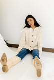 a spring outfit essential, this neutral cable knit cardigan has those trendy “cottage core” vibes. it features chic brown buttons + can be worn open or closed for endless styling possibilities. dress it up with a silk skirt + heels, or down with jeans + sneakers.