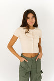 - taupe // scoop neckline, buttons