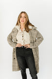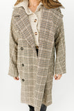 - brown plaid // oversized lapel collar, buttons, pockets, lined