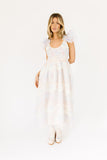 - cotton candy // midi length, scoop neckline, ruffle sleeve, smocked bodice, fully lined