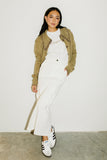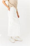 this long white cargo skirt will turn any outfit into an on-trend moment. inspired by the 90s / y2k aesthetic, this cargo maxi skirt has urban pouch pockets + a stylish slit in the back. dress it up with boots + an embroidered knit, or down with a basic tee + sneakers.