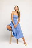 ballerina vibes but with a little extra elegance, this blue midi dress is perfect for weddings, brunch dates, + everything in between. with its classic silhouette + stretchy bodice, it’s a timeless tank dress you can wear season after season.