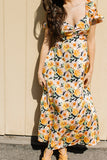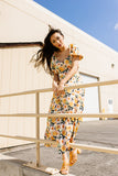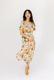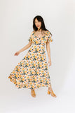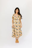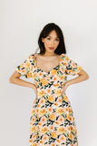 - navy, mustard, orange, + green floral // midi length, sweetheart neckline, elastic shoulders, elastic back, zipper closure, lined