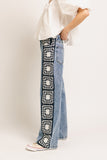 simple yet extremely showstopping, these vintage-inspired wide leg jeans feature intricate crochet detailing down the sides. made to elevate any casual outfit, we love pairing them with basic tees, breezy blouses, + everything in between.