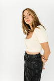 - cream // square neckline, buttons, cropped
