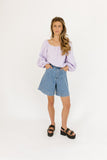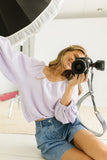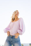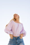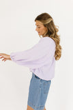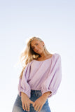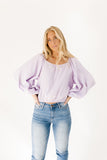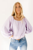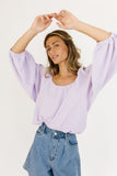- lilac // scoop neckline, long bubble sleeves, elastic hem, keyhole button closure