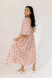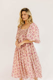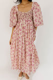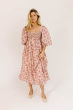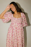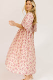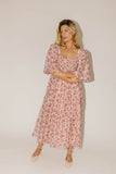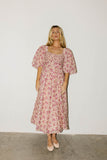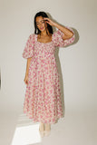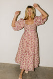 whether you’re searching for the perfect wedding guest dress, or for an excuse to feel like a princess, this puff sleeve midi dress does not disappoint. it features a stunning pink vintage floral pattern, dramatic puff sleeves, + a flirty corset-inspired bodice. the perfect long formal dress for garden parties, fancy dinners, + anytime you feel like frolicking.