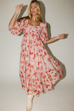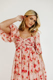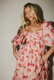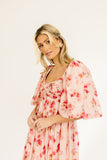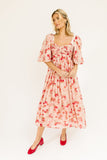 the search for the perfect all-season wedding guest dress is over. this stunning puff sleeve midi dress features a pink + red watercolor pattern + a flirty corset-inspired bodice. guaranteed to turn heads with every wear, it’s a must-have for cocktail parties, holiday dinners, or anytime you feel like frolicking.