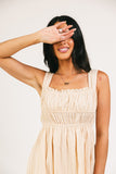 lightweight, flowy, + easy to dress up or down, this neutral tank dress is a summer essential. with its feminine details + breezy silhouette, it’s the perfect casual dress to style with heels, flats, sneakers, or sandals all season long.