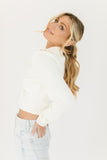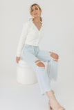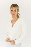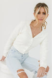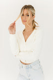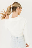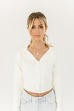 - ivory // cropped, v-neckline, peter pan collar, waffle knit, working buttons, long sleeves