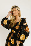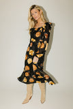 - black floral // midi length, square neckline, balloon sleeves, elastic cuffs, back tie, smocked back, lined to knee