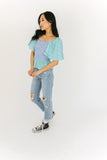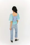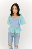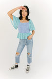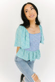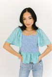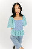 - blue + teal // square neckline, smocked bodice, flutter sleeve, ruffle hem