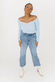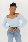 - baby blue // sweetheart neckline, ribbed knit, long sleeves