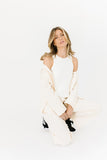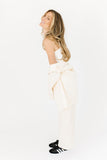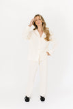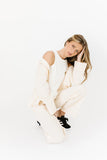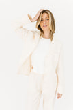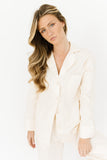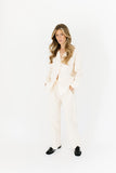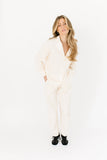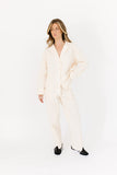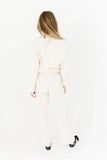 - cream // two-piece set, lapel collar, buttons, breast pocket, elastic waistband, pockets