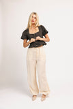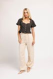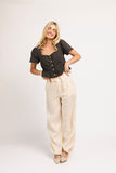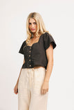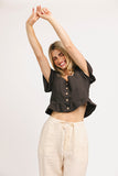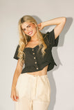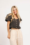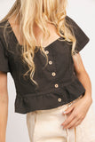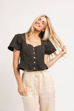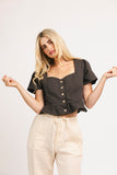 - charcoal // sweetheart neckline, cropped, peplum, buttons