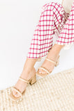 - nude // slip on style, open toe, double strap, chunky block heel, backless, lined footbed