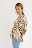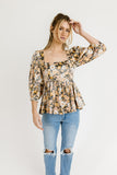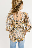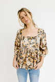 - charcoal, pink, + orange floral // square neckline, puff sleeves, adjustable back tie, zip closure