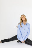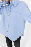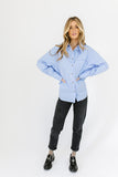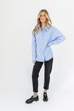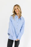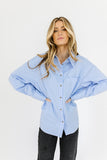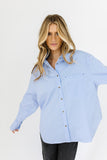- blue + white pinstripes // collared, breast pocket, buttons, cuffed sleeves