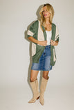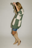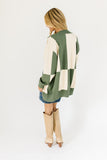 this flowy green + cream cardigan will add a trendy touch to any spring outfit. it has a relaxed longline silhouette + features a mod checkered color block pattern. the perfect lightweight green cardigan to wear anywhere from work lunches to casual dinner dates.