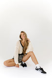 your new go-to summer outfit, this cream + black crochet set is made for beach days + vacays. it’s detailed with black stripes + trendy scallop hemming to give off those coveted euro girl summer vibes. the only crochet two piece set you’ll want to wear this season.
