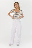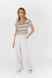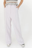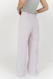 - faded lavender // wide leg, scalloped hem, one button zipper fly, latch closure, belt loops, pleated, pockets