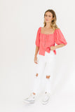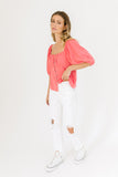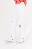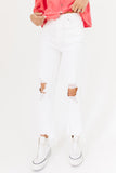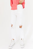 - white // high-waisted, frayed hem, ankle length, working buttons, pockets, distressed