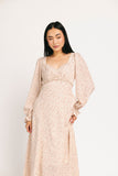 stunning in every way, this long sleeve maxi dress will take you from family pictures to fancy dinners. featuring long balloon sleeves + a flirty v-neckline, this cream floral dress fits + flatters in all the right ways.