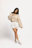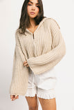 the chunky cropped cardigan of our dreams, this knit features long, slouchy sleeves + ‘barely there’ hook closures. the perfect oversized sweater to throw on with shorts, skirts, or your favorite pair of denim.