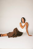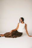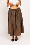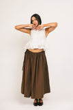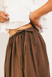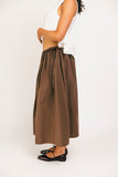 - brown // maxi length, elastic waistband, adjustable side ties