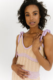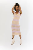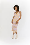 - lavender + tan // midi length, v-neckline, adjustable straps