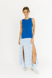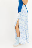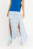 - blue floral // maxi length, side slits, zipper closure, partially lined