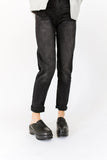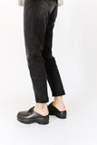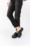 - black // platform loafers, round toe, open back, slip-on, cushion insole, rubber outsole
