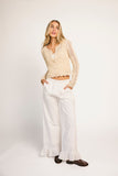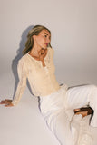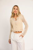 - natural // scoop neckline, open knit, scallop hem, buttons