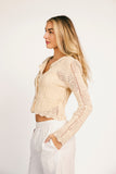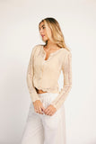 the perfect elevated basic, this button-up crochet top will take you from day to night, season after season. with its intricate scallop details + chic pearly buttons, it’s great for layering or styling solo. we love dressing it up with a mini skirt + heels, or down with cozy pants + flats.